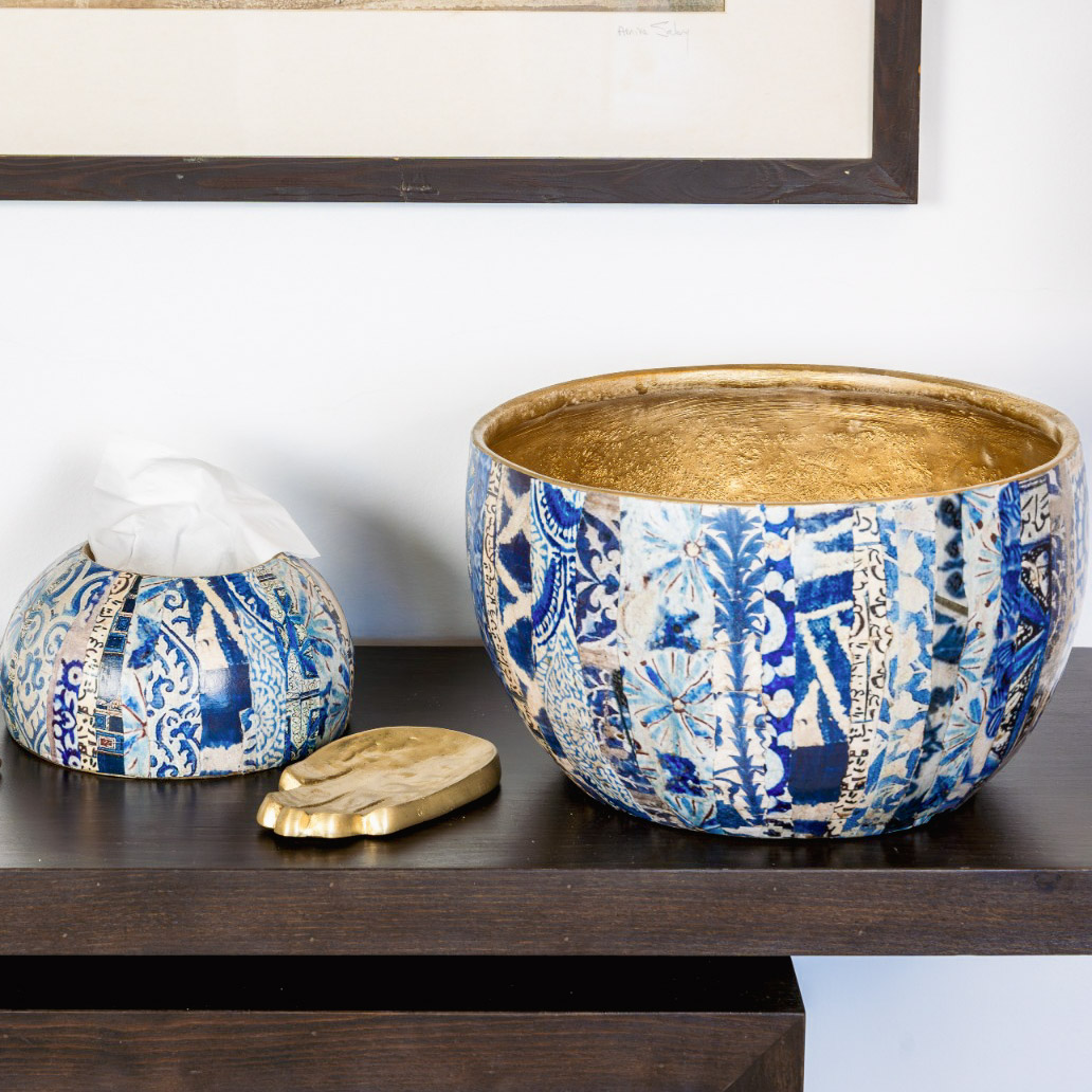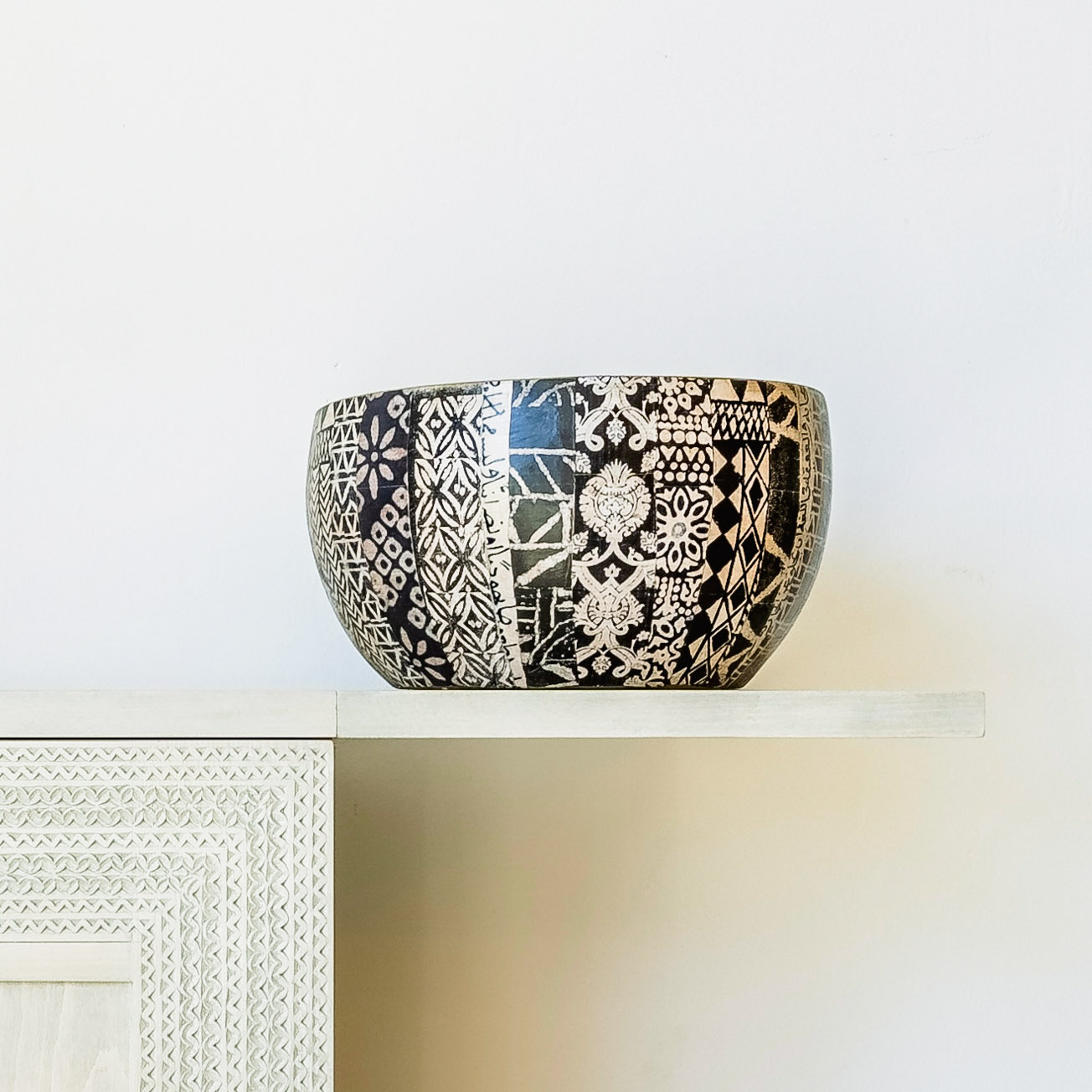 A vibrant interplay of colour and pattern, these handcrafted collage bowls bring character to any setting. Perfect for flowers, cherished objects, or as striking decorative pieces on their own, each design reflects a thoughtful balance of artistry and function.